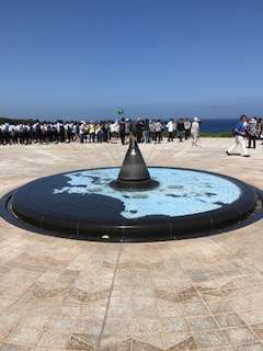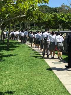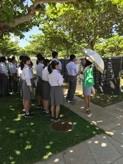 壕での体験学習を終え,バスで平和祈念公園に到着しました。平和の礎(いしじ)の説明を受けた後,平和の広場で平和宣言を行い,平和祈念資料館での学習活動を終えた一行は,現在は本日の宿泊地へ向け移動中です。今日は朝が早かったため,少し疲れが出てきた人もいるのでは?