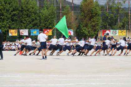 色別対抗「綱引き」の様子です。赤組が勝ちました。