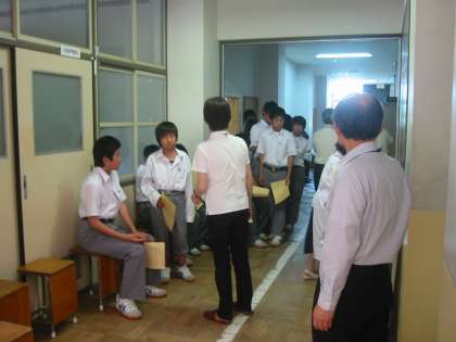 今日、1年生の1組から3組まで麻疹(はしか)の予防接種を行いました。