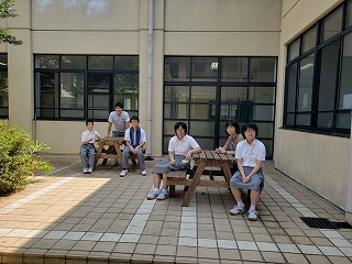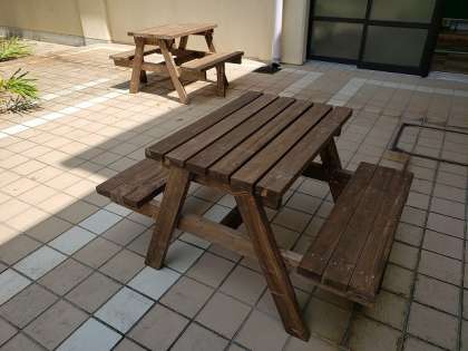 西賀茂中学校の中庭にテーブルと椅子が増えました。テーブルと椅子がセットになっている2台は支援ルームの生徒たちが技術の時間に作りました。寸法を測り、木を切り、保護剤を塗り、インパクトドライバーでビスを打つという、難しい作業にコツコツと取り組み、見事完成しました。大切に使ってください。2台のベンチは校長先生が夏休みの自由課題として作りました。座り心地を教えてくださいね。