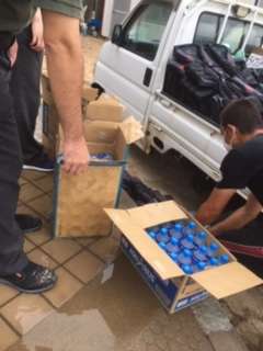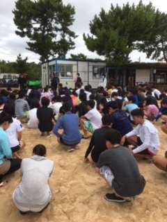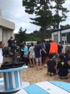 ライフジャケット、飲料水の配布のあと体験の始まりです。
