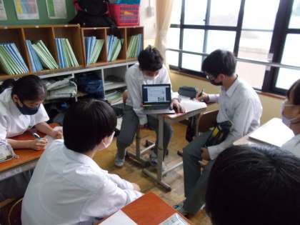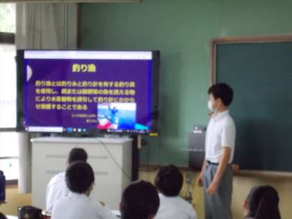 調べた内容を班で発表し,班の代表はクラスで発表しています。