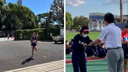今年度の駅伝チームは、「思いをつなぐ」「笑顔で明るい襷を」を目標にしてきました。当日、一人一人が思いをこめた襷をアンカーのキャプテンへつなぎ、笑顔で駅伝を終えることができました。これも日々支えてくださる周りの方々のお陰です。