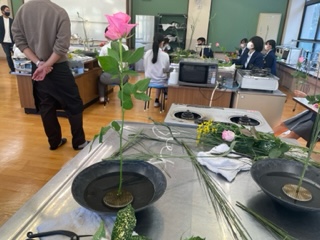 本日3年生で華道体験が行われました。初めて生け花を経験する生徒が多く,講師の先生の話をしっかり聞き,作品を上手に作っていました。