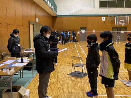 24日に口丹波の体育館で京都府新人大会2年生の部が行われました。M君がシングルス優勝、N君とF君ペアがダブルス3位に入賞しました。2年11人全員が参加して、日頃の練習の成果を発揮しました。これからの活動につながる好成績となりました。今後の活躍が楽しみです。
