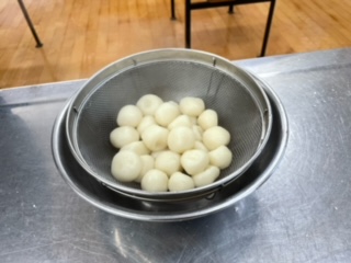 3年生では家庭科の調理実習でみたらし団子を作りました。