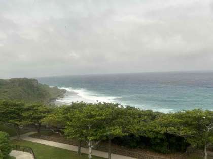 あいにく雨も降っているようですが,平和祈念公園からはきれいな海の景色が見られました。