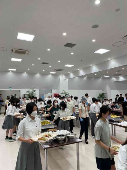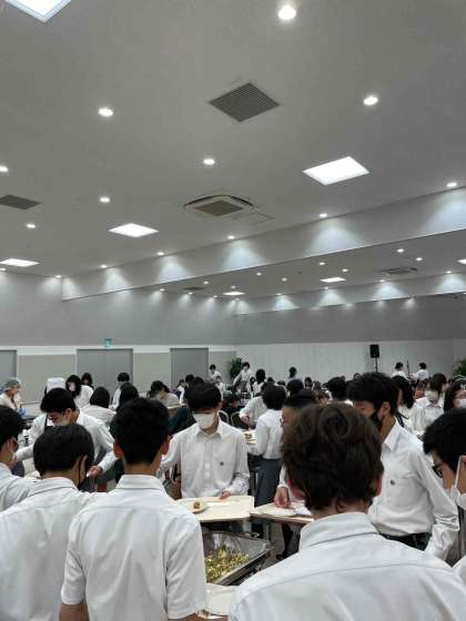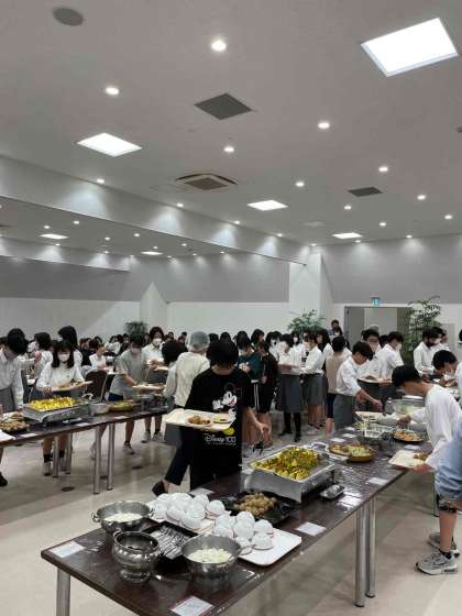 食事は、ビュッフェスタイルで、各自思い思いに好みのものを選んでいます。