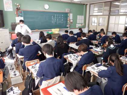 1年生の国語科では、言葉が持つ価値の認識の一環で書写を行っています。