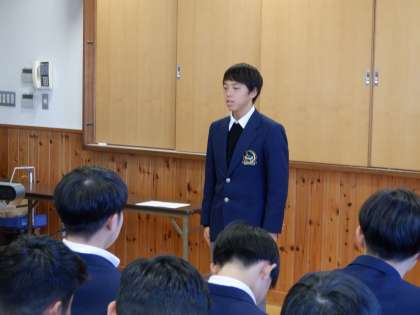 最後に、生徒会を代表して、生徒会長のTくんより、2学期を振り返り、冬休みに復習などをして、3学期にいいスタートがきれるよう呼びかけがありました。