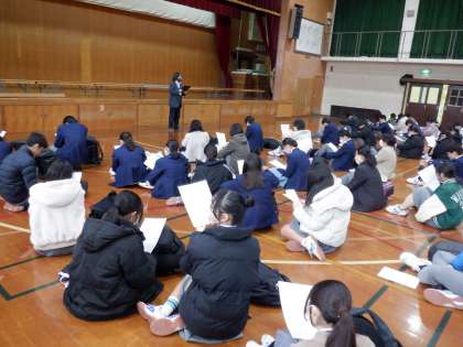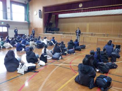 6限には、明日の公立高校中期選抜にむけて、体育館で事前指導がありました。
