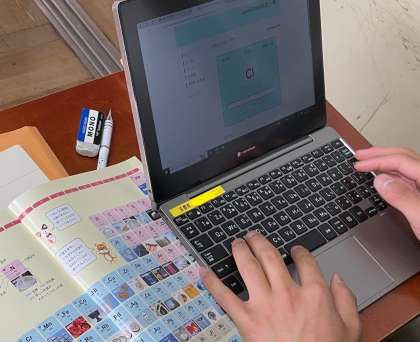 昨日、2年生の理科の授業にお邪魔しました。GIGA端末を使って一所懸命に取り組んでいるのは、元素記号クイズです。全問正解まで何秒でいけるか?速さを競っています。教科書の表紙の裏に元素記号が書かれていますが、「F」ってなんやったっけ?と声を掛け合いながら、一つでも早く覚えて時間を短くしようと頑張っていました。おうちの方に、元素記号クイズ、出してみてあげてください!