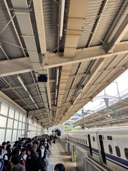 ここからはバスに乗り換え、自然体験先へ向かいます。