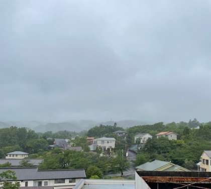 現地は、ご覧の通りあいにくの小雨まじりの天気ですが、昼からは回復するとの予報です。