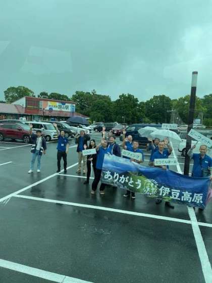 それぞれのペンションから道の駅に集まり、ここからディズニーランドに出発です。みんな元気です!ペンションの方が見送りに来てくださいました。