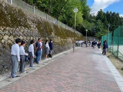 今朝は、生徒会、中央委員会、専門委員会の皆さんが、校門で「あいさつ運動」を行いました。私も登校するときに、早くからやってくる皆さんと一緒になりました。本当に皆さん、ありがとうございます。先生方も一緒に混じってあいさつしてくれることで、今日の天気のようにカラッとさわやかな気持ちになりました。