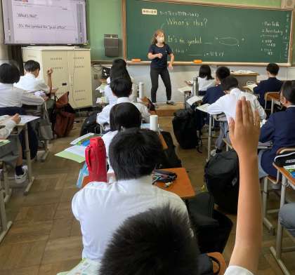 続いては、1年生英語に伺いました。テンポいいですね〜!