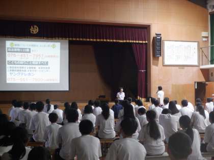 本日ご講演いただきましたスクールサポーターのKさん、お忙しいなかご来校いただきわかりやすくお話しいただきました。本当にありがとうございました。