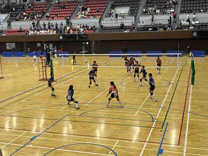 開始早々2点を連取し幸先良いスタートを切りましたが、その後は拮抗した展開となり、225−22で惜しくも第1セットをとれませんでした。第2セットも粘ってつなぐプレーで、なんとか食らいつきました。