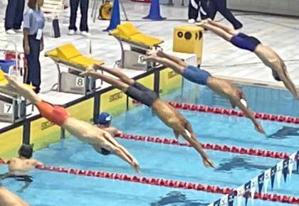 今日、アクアリーナを会場に、近畿中学校総合体育大会水泳競技の部が行われ、Mさんが400m個人メドレーに出場しました。「緊張してます」と泳ぐ前に話してくれていましたが、バタフライ、背泳、平泳ぎ、クロールと泳ぐさまは、さすが京都を代表するものでした。惜しくも決勝進出にはなりませんでしたが、本当にここまでよく頑張りました!ぜひ、次に繋げてくださいね。お疲れ様でした!