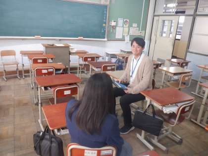 1・2年生の教育相談では、担任の先生との大切なコミュニケーションの場として、学校生活全般にわたって、お話をさせていただいています。