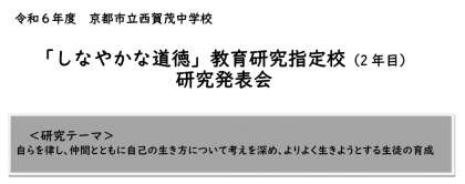 明日11月26日(火)の午後、「しなやかな道徳研究指定校(2年目)研究発表会」を行います。2年1組、4組の生徒の皆さんに協力してもらい、公開授業研修を行います。