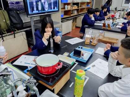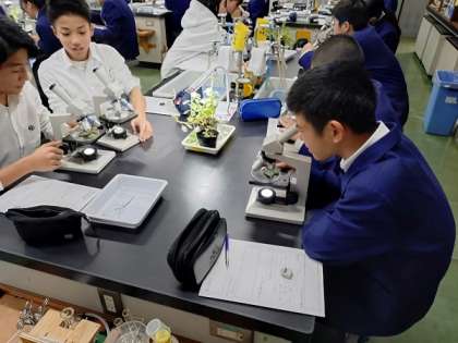 1年生では午後からバスに乗って、科学センター学習に向かいました。化学、地学、生物、物理のテーマに分かれて実験です。上の写真は化学の実験ですね。「作って学ぼうあわパワー」というテーマだけに、いろいろな液体で泡を作ってきたのですね。真ん中の写真は植物を顕微鏡でのぞいています。「植物のメッセージ」というテーマだけに、植物が発する声を読み解いてきたのでしょうか?下の写真は落ち葉をガサガサしているようです。どんなことを学んできたのか、月曜日聞かせてくださいね!