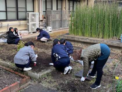 今日の放課後は代表・専門委員会が開かれ、中庭では衛生委員会の皆さんが、中庭の草むしりを行ってくれました。体操服に着替え、スコップや大きなシャベル、熊手も使って根っこからごっそりむしり取ってくれています。何より、かがんだ姿勢での作業なので大変ですが、みんな楽しくしっかり手を動かしてくれていました。今回のこの作業、新委員長の公約に挙げられていて、見事公約達成です!