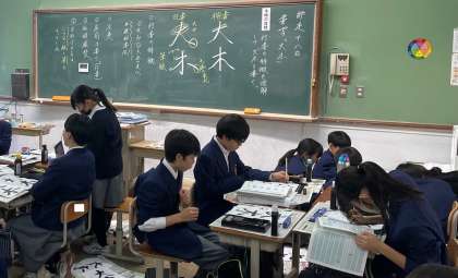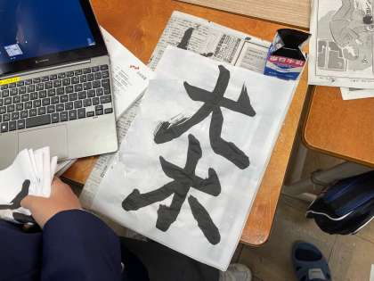 1年生の国語では、今日は書写に挑戦です。お題は「大木」。「はらい」も「とめ」もしっかりあるので、腕の見せ所です。出来上がった作品は、GIGA端末で写真を撮ってロイロで提出します。まもなく書初めのシーズン到来ですので、皆さん腕を磨いてくださいね!