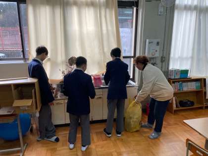 育成学級では、色々しまい込まれていたものを整理して、スペースを空けていきます。新しい年を気持ちよく迎えるために、みんな一所懸命掃除をしてくれました!