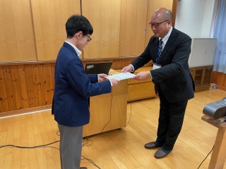 まず最初に、男子バドミントン秋季新人大会京都府大会の入賞者に伝達表彰を行いました。