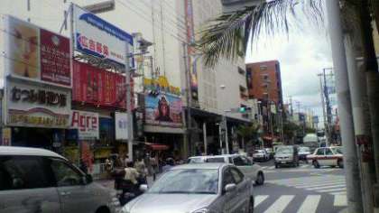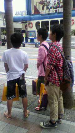 国際通りで班活動中。平日にもかかわらずたくさんの観光客で賑わっています。お土産は買えたかな?