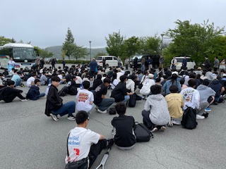 退村式を終えた修学旅行の一行は、バスに乗り込み、東京方面へ出発しています。