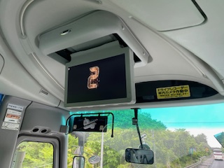 さて、東京へ向かう車内では、バスレクが始まっています。