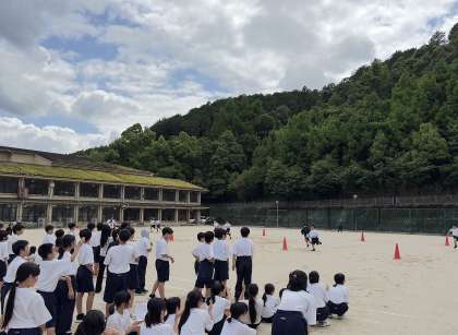 写真1枚目は「2人でGO!」の様子です。ふたりで1本のバーを持ち、指定されたコーンを回り、戻ってくるまでのタイムをクラスごとに競います。大きな歓声の中、みなさん一生懸命取り組んでくれました。写真2枚目は「大縄跳び」の様子です。縄の握り方や足の上げ方など各自で考え、一回でも多く回数が伸びるよう工夫していましたね。