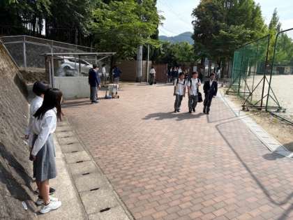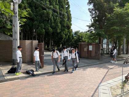 6月になりました。1学期も折返しです。先週末は代議専門委員会でしたので、今朝はあいさつ運動に、生活委員さんや生徒会本部の皆さんが繰り出してくれています。今週は生徒総会があり、そこでの校則見直しの議論も踏まえつつ、あいさつと着こなしについて、見本を見せてくれていました。大切なのは、お互いが気持ちよく過ごせる学校の雰囲気づくりです。もうすぐ梅雨に入りますが、気持ちの良い毎日が過ごせるよう、みんなでつながり、助け合って参りましょう!
