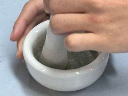 2年生では、理科室で化学の実験が行われました。硫黄と鉄を混ぜて熱すると「硫化鉄」ができる実験です。元の粉末の色を見てみると、黄白っぽいのが白っぽいの、ということですが、乳鉢に入れ、混ぜ合わせたものを試験管で熱すると、あらどうでしょう、色がどんどん変化します。一方で、卵の腐ったようなにおいが出るわけですが…、これを「腐卵臭」というそうです。理科の先生に教えてもらいました。字の通りですね!勉強になります。実験前と実験後、粉末の成分は同じでしょうか、違うでしょうか?またそれはなぜでしょうか?お答えください、どうぞ!