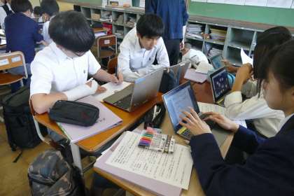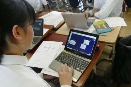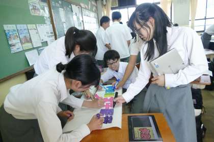自分たちと同じ中学生がほしくなるような商品を考え、プレゼンテーションをする準備をしています。どんな商品にするか、クラスでアンケートをとったり、商品名を考えたり、どのグループも真剣に考えている姿がたくさん見られました。どんな商品が出てくるのか、とても楽しみです。