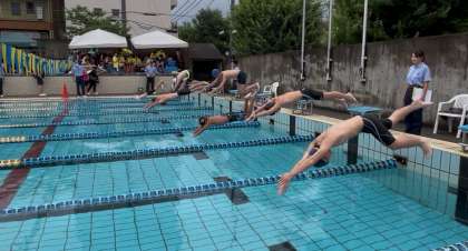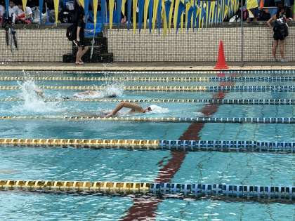 雨が降ったりやんだりの不安定な天候のなかでしたが、水泳部のみなさんの力強い泳ぎが見られました。