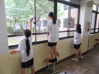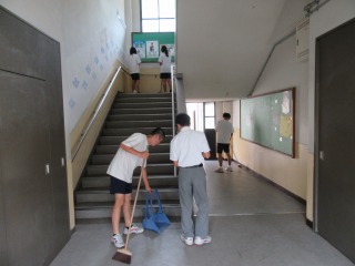 終業式の後は、大掃除に取り組みました。ガラスクリーナーできれいに窓を拭く人、階段や教室を掃き掃除する人、みんなしっかり取り組んでくれました。校舎も1学期お世話になったので、2学期に気持ちよく過ごせるよう、環境を整えました!