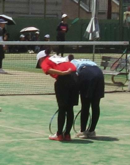 22日(火)、西院コートにおいて、ソフトテニス部全市決勝個人の部が行われました。西賀茂中学校から11ペアが出場しました。対戦相手は京都光華中学校、強豪です。結果はゲームカウント3-0で敗れましたが、二人で声を掛け合いながら頑張っていました。何より、3年生を中心に、暑い中の練習そして試合と粘り強く取り組んできました。1・2年生にと全市決勝トーナメントの雰囲気を知る、とても大切な経験になりましたね。皆さん、本当にお疲れさまでした!また、応援に来て下さった保護者の皆様、本当にありがとうございました。