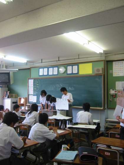 夏休み前に総合的な時間を使って、「地域調べ」をグループごとに地域にでかけ、調べた結果をまとめました。今日はクループごとに学級で発表会をもちました。みんな真剣に発表が出来たと思います。今後、学級代表を決め、学年代表を決めていく予定です。