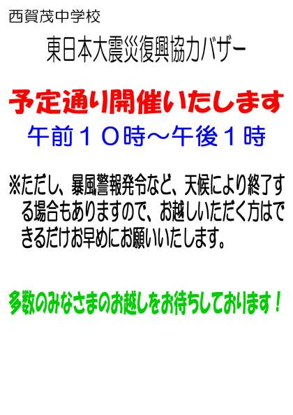 午前8時で以上のように予定しております。あいにくの天候ですが、多数のみなさまのお越しをお待ちしております。