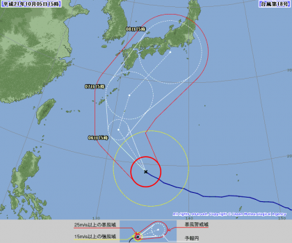 さて、新聞・テレビなどで報道されておりますように現在、台風18号が接近しております。本校におきましては、台風により『京都南部』または『京都・亀岡』に「暴風警報」が発令された場合には、下記のような措置を取っておりますので、テレビ・ラジオ・インターネット等の最新の報道に注意し、ご対応いただきますようお願い申し上げます。