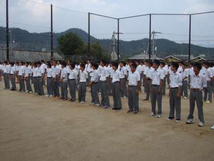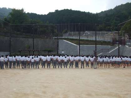 第2グランドで,2年生の学年合唱の練習を