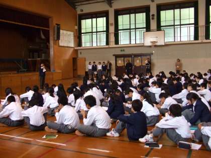 校外学習を湯意義で楽しい時間にするためにも、最後の集会で一致団結。