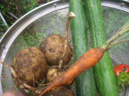 中庭 きゅうり、ジャガイモ、にんじん 収穫!