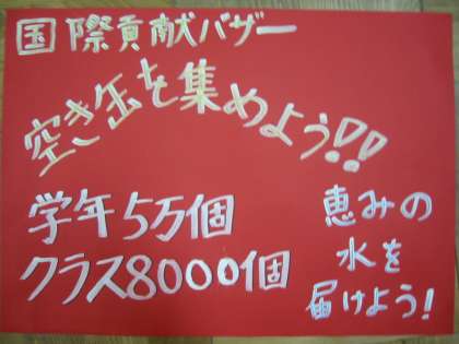 どのクラスも一生懸命取組んでくれています。ぜひ。アルミ缶を持ってきて下さい。