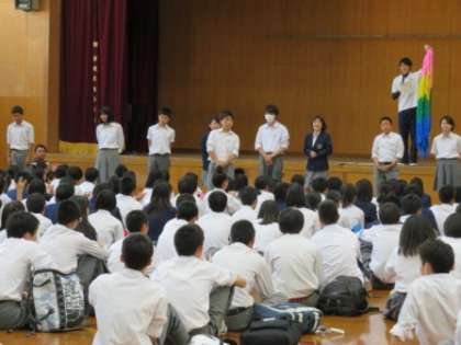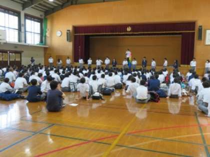 5月19日(土)からの修学旅行に向け,18日の6限3年生は結団式を行いました。修学旅行の行先で長崎。今回の修学旅行の目的をみんなで再確認することができました。全員がたくさんの思い出を作り,元気に帰ってきてくれることを願っています。