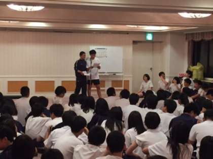 夕食後のレクリエーションの様子です。修学旅行実行委員会が,放課後やお昼休みを使って企画を考え,何度もリハーサルを行い迎えたレクリエーション。部屋が少し狭く熱気で溢れていました。予定通りにいかない部分もありましたが,最後はみんなでエールをして盛り上がって終わりました。修学旅行実行委員会の皆さん,この日のためにたくさんの準備ありがとうございました。
